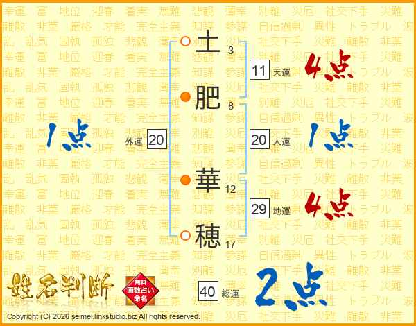 土肥華穂さんの総運は40画の2点!