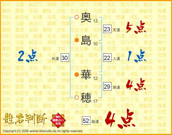 奥(13画)島(10画) 華(12画)穂(17画)