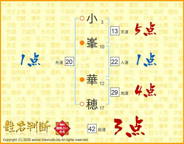 小峯華穂さんの天運は13画の5点!
