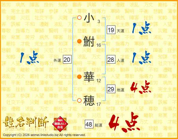 小鮒華穂さんの総運は48画の4点!