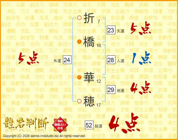 折橋華穂さんの総運は52画の4点!