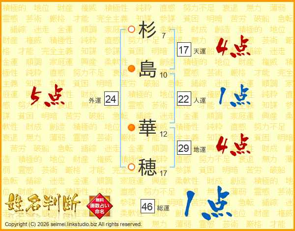 杉(7画)島(10画) 華(12画)穂(17画)