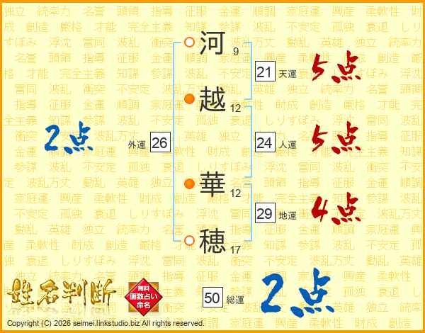 河越華穂さんの天運は21画の5点!