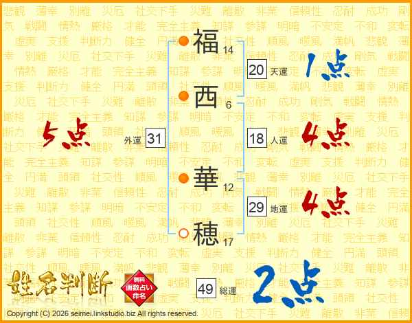 福西華穂さんの外運は31画の5点!
