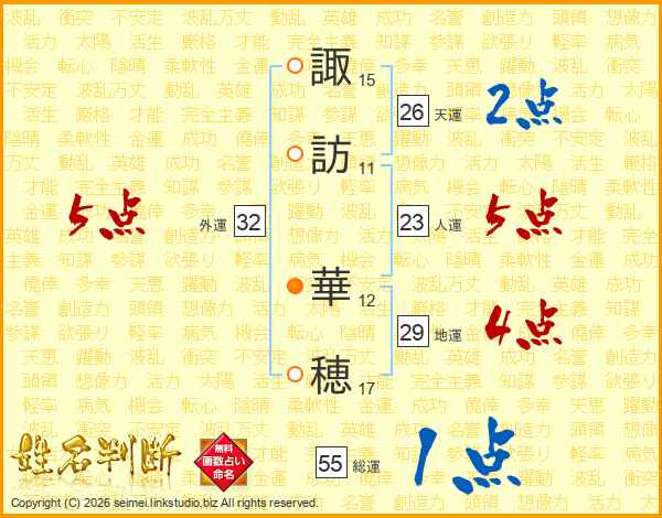 諏訪華穂さんの外運は32画の5点!