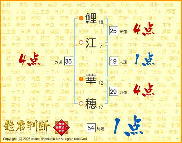 鯉(18画)江(7画) 華(12画)穂(17画)