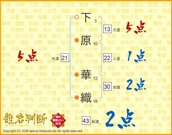 下原華織さんの外運は21画の5点!