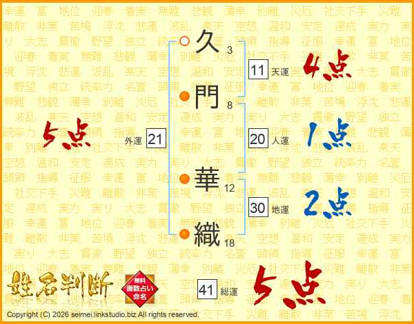 久門華織さんの外運は21画の5点!