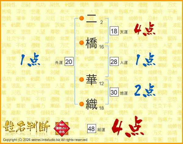 二橋華織さんの天運は18画の4点!