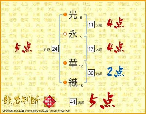 光(6画)永(5画) 華(12画)織(18画)