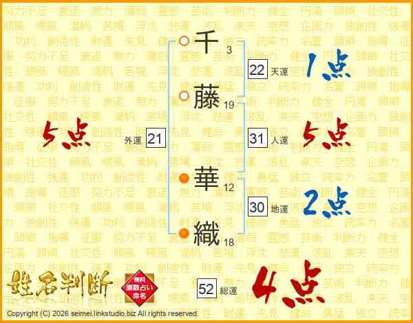 千藤華織さんの総運は52画の4点!