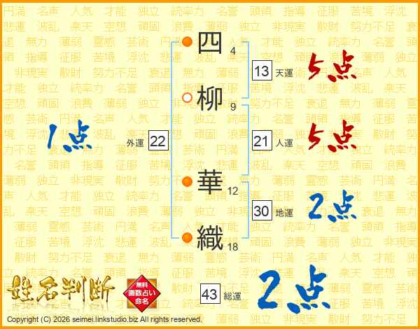 四柳華織さんの総運は43画の2点!
