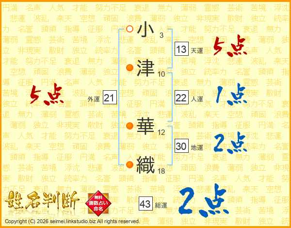 小津華織さんの総運は43画の2点!