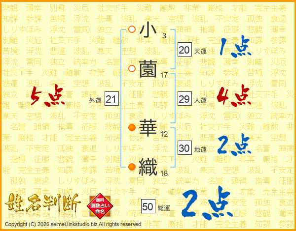 小薗華織さんの外運は21画の5点!