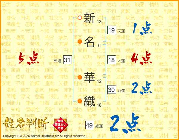 新名華織さんの天運は19画の1点!
