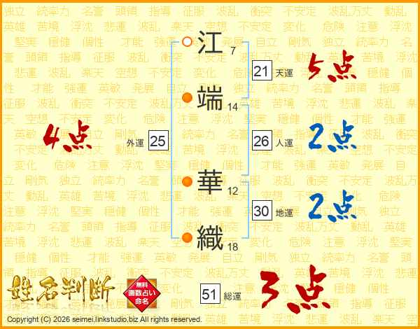 江端華織さんの天運は21画の5点!