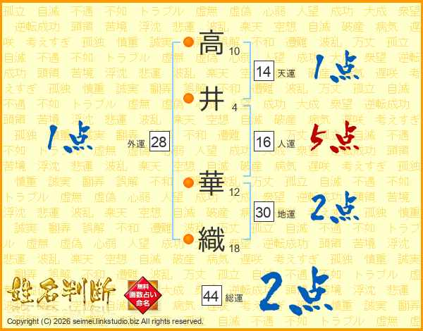 高(10画)井(4画) 華(12画)織(18画)