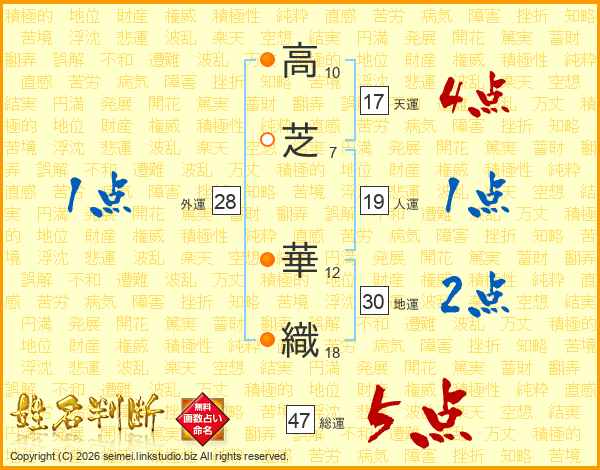 高芝華織さんの総運は47画の5点!