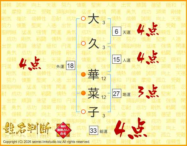 大久華菜子さんの総運は33画の4点!