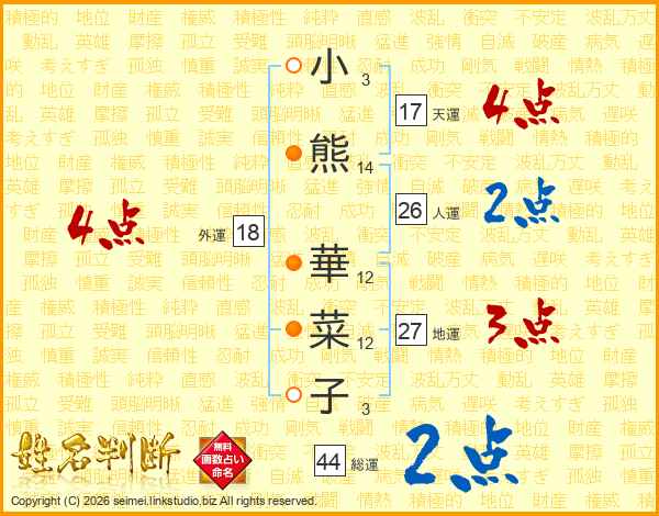 小熊華菜子さんの総運は44画の2点!