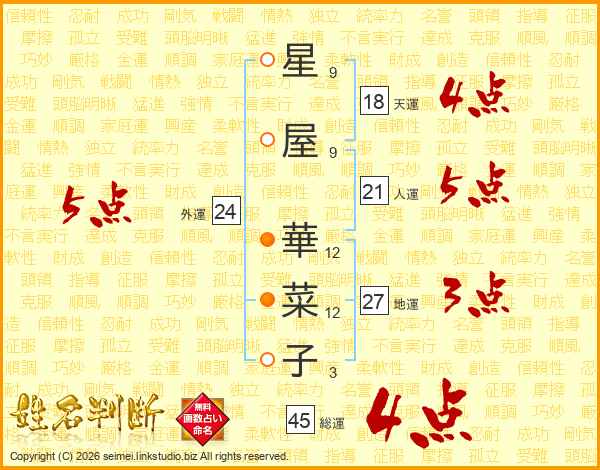 星屋華菜子さんの総運は45画の4点!