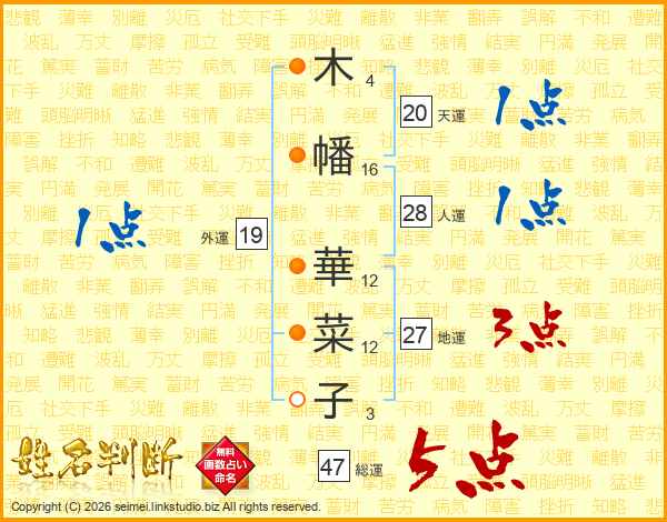 木幡華菜子さんの総運は47画の5点!