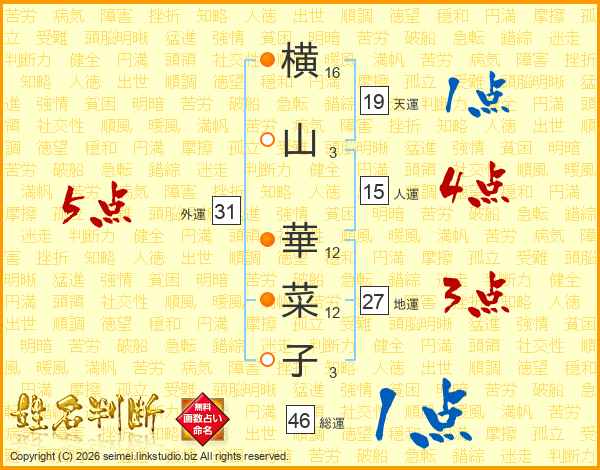 横山華菜子さんの総運は46画の1点!