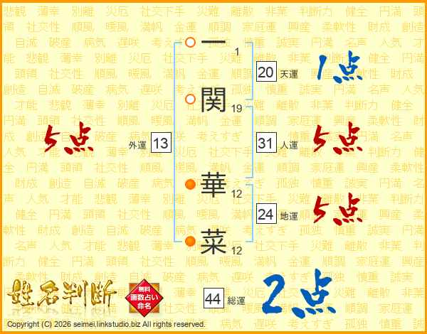 一関華菜さんの総運は44画の2点!