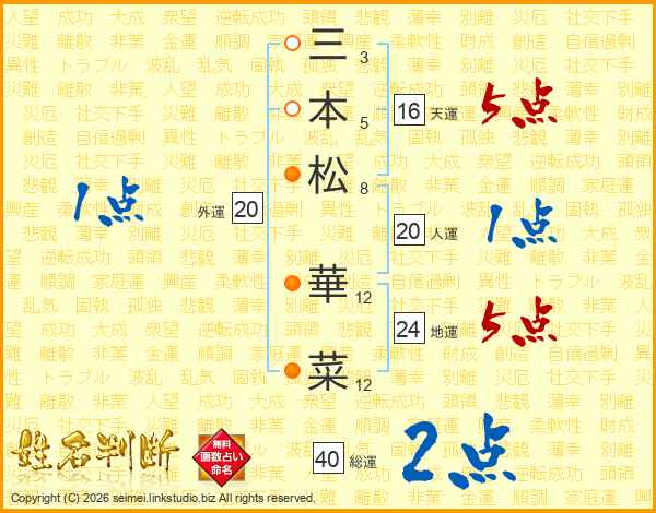 三本松華菜さんの地運は24画の5点!