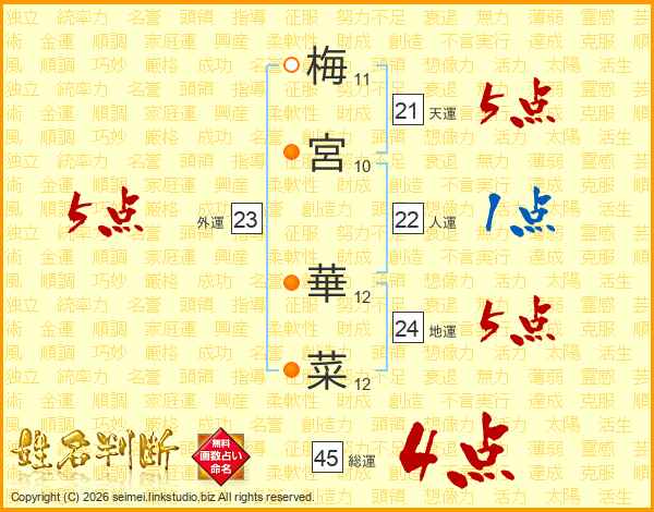 梅宮華菜さんの総運は45画の4点!