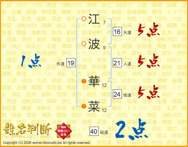 江波華菜さんの総運は40画の2点!