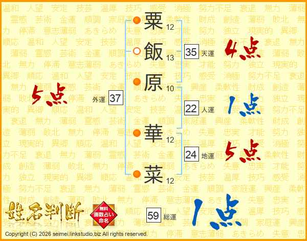 粟飯原華菜さんの地運は24画の5点!