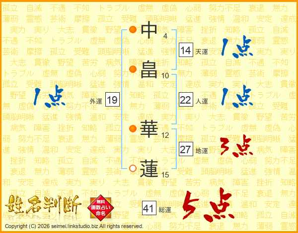 中(4画)畠(10画) 華(12画)蓮(15画)