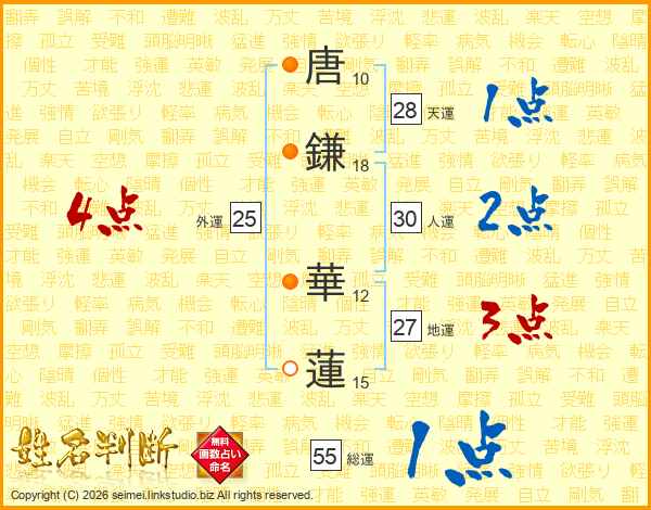 唐(10画)鎌(18画) 華(12画)蓮(15画)