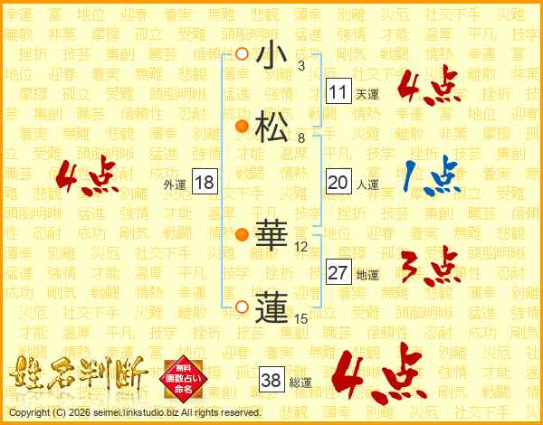 小松華蓮さんの総運は38画の4点!