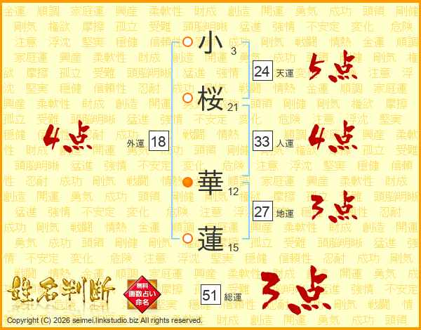 小(3画)桜(21画) 華(12画)蓮(15画)