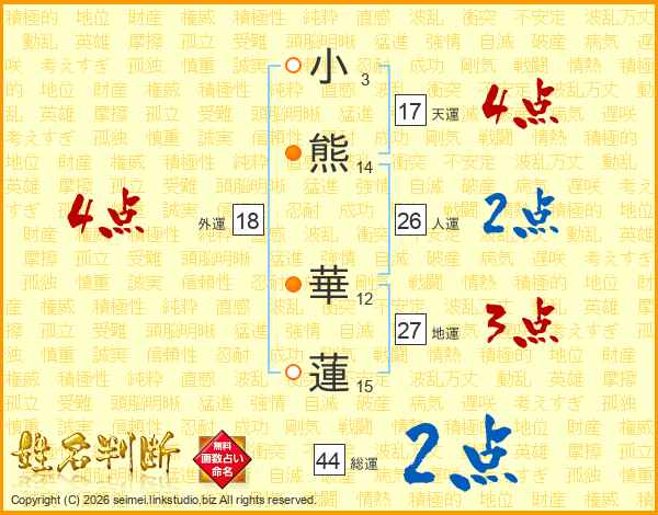 小熊華蓮さんの総運は44画の2点!
