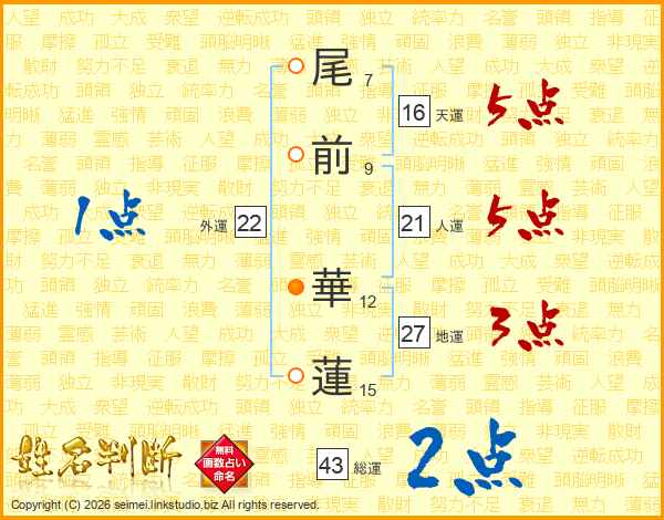 尾(7画)前(9画) 華(12画)蓮(15画)
