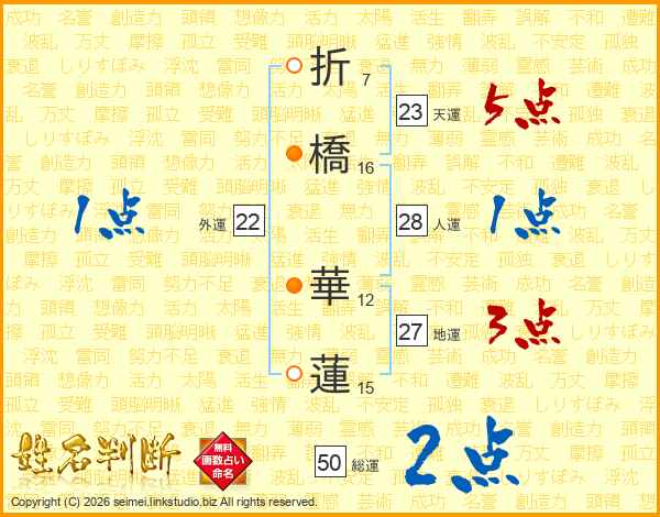 折(7画)橋(16画) 華(12画)蓮(15画)