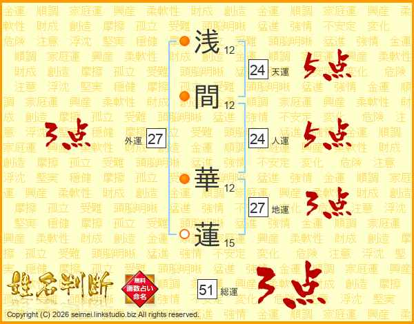 浅間華蓮さんの総運は51画の3点!