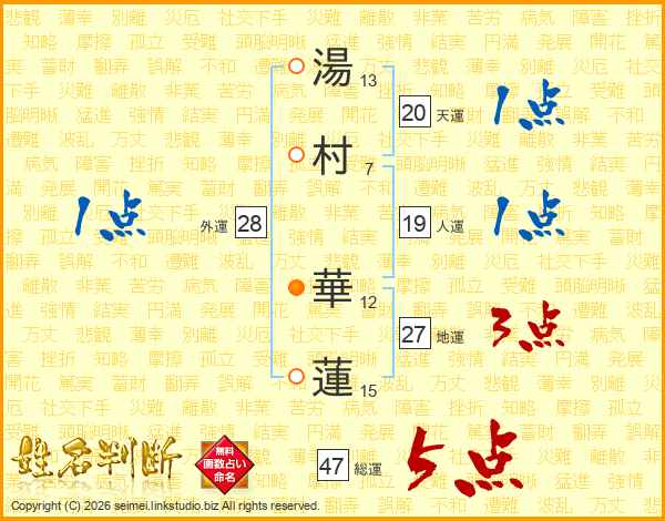 湯村華蓮さんの総運は47画の5点!
