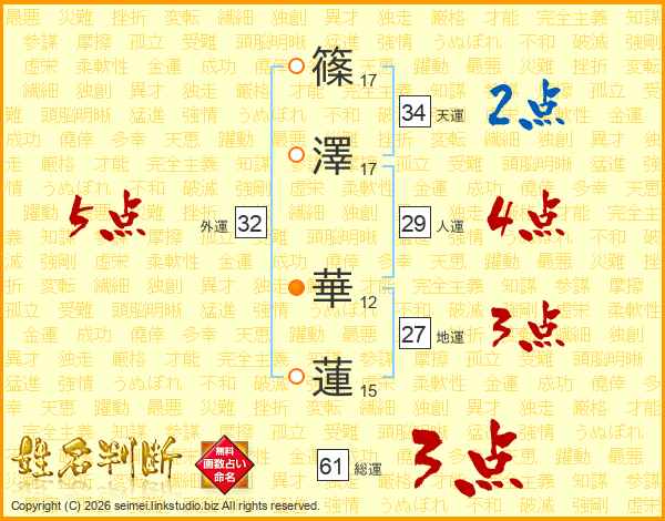 篠(17画)澤(17画) 華(12画)蓮(15画)
