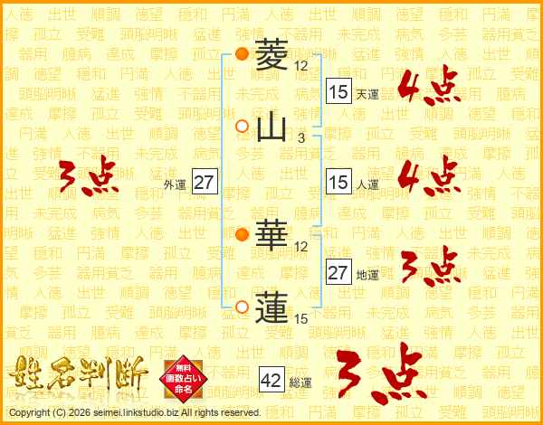 菱(12画)山(3画) 華(12画)蓮(15画)