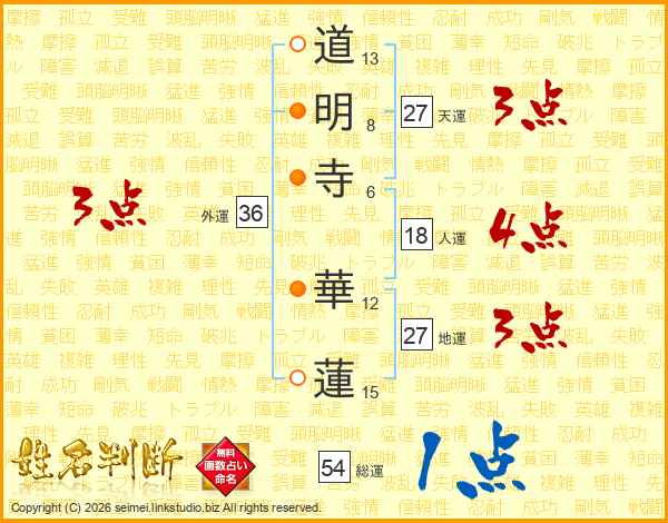 道明寺華蓮さんの外運は36画の3点!