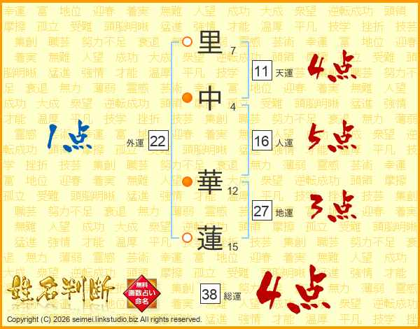 里中華蓮さんの総運は38画の4点!
