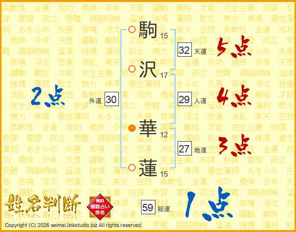 駒沢華蓮さんの天運は32画の5点!