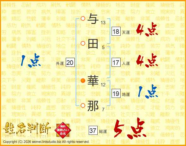与田華那さんの総運は37画の5点!