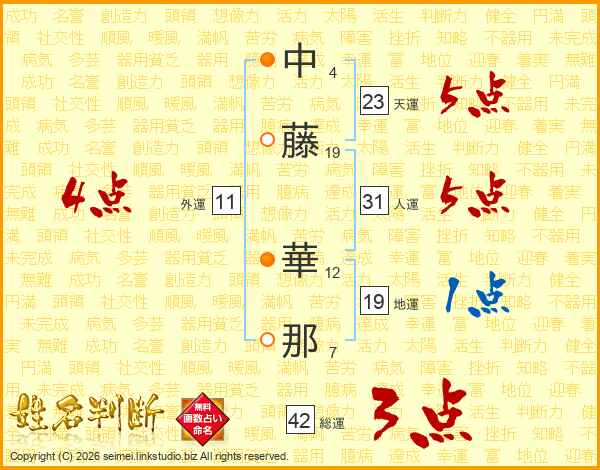 中(4画)藤(19画) 華(12画)那(7画)