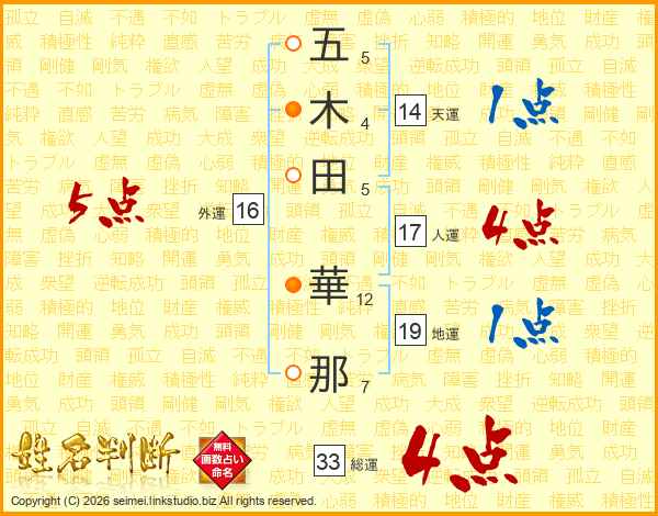 五(5画)木(4画)田(5画) 華(12画)那(7画)