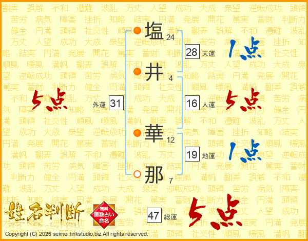 塩(24画)井(4画) 華(12画)那(7画)